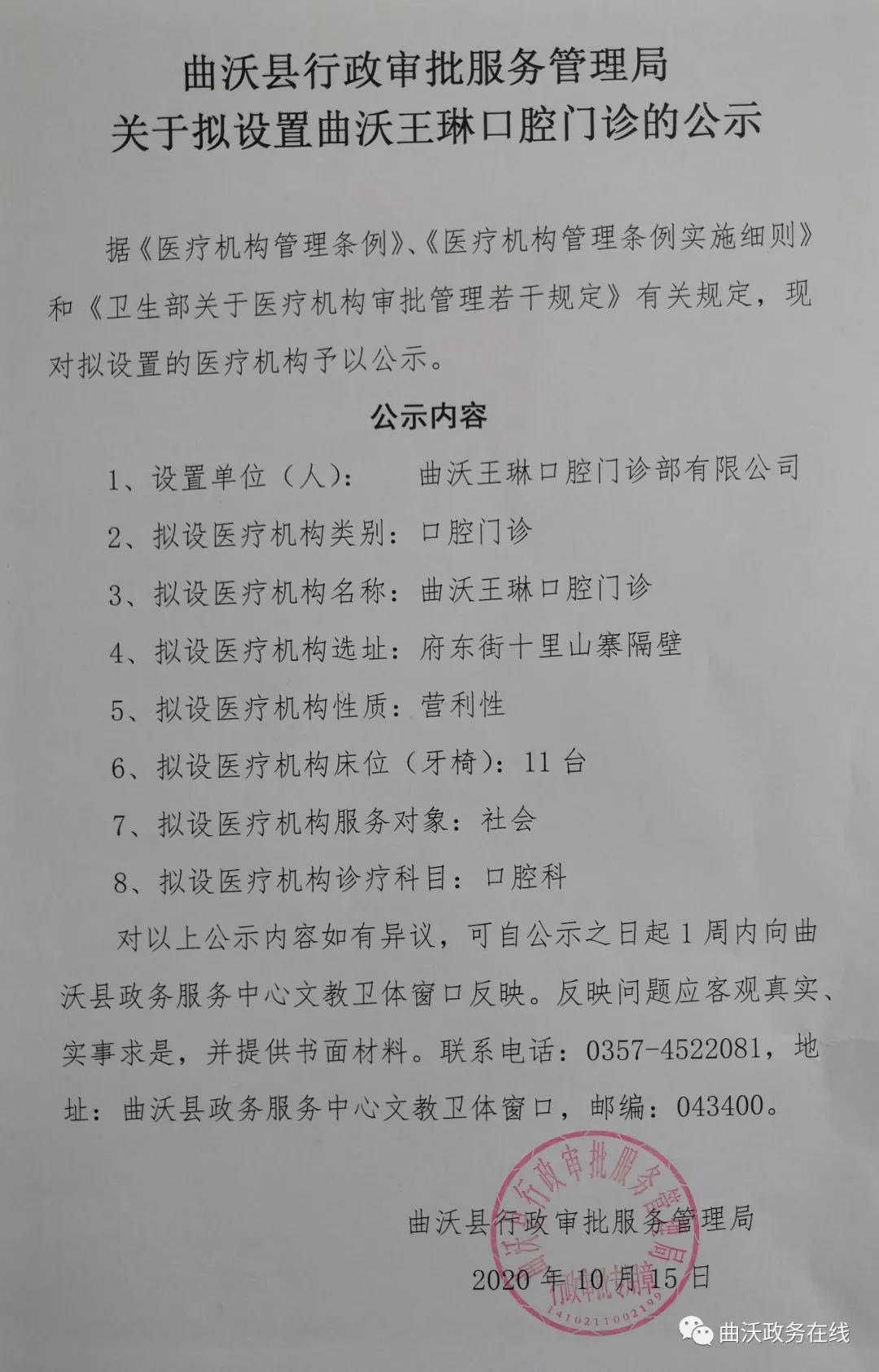 3、擬設(shè)醫(yī)療機(jī)構(gòu)名稱(chēng):曲沃王琳口腔門(mén)診