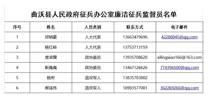 曲沃縣廉潔征兵監(jiān)督員信息公示,歡迎社會(huì)各界予以監(jiān)督