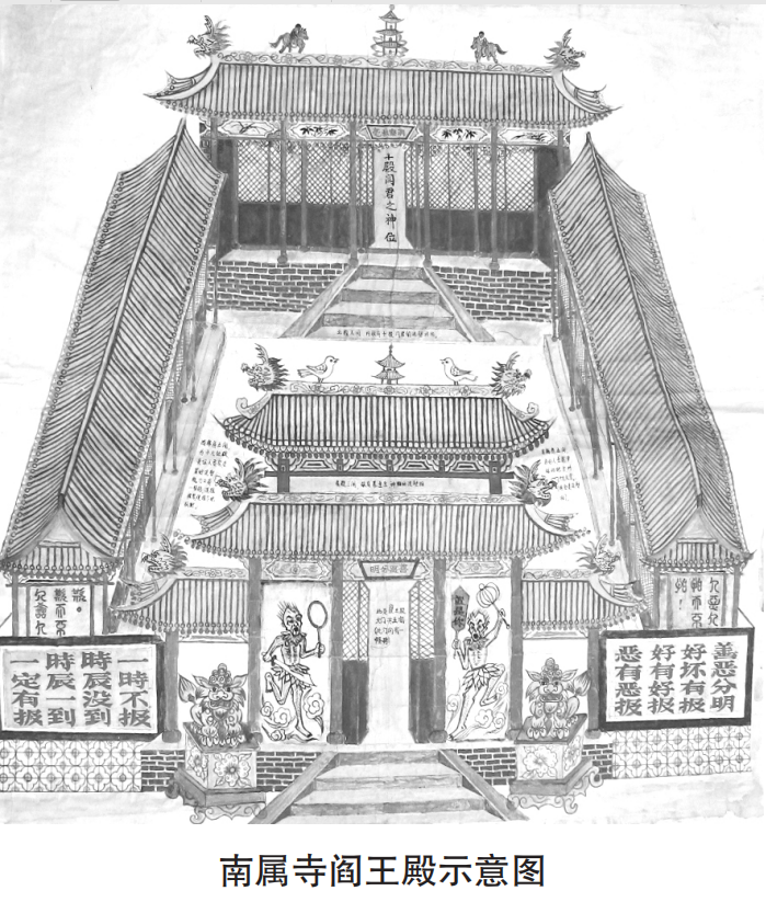 南屬寺村的先祖?zhèn)儗⑹铋愅蹙丛诖髲R北大殿中,并在兩側(cè)偏殿建起天堂和地獄,就是要詔告人們永遠(yuǎn)不忘積德行善,切莫害人害己,時(shí)刻牢記:善有善報(bào),惡有惡極,天理昭昭,天網(wǎng)恢恢,神道永存,報(bào)應(yīng)無爽。