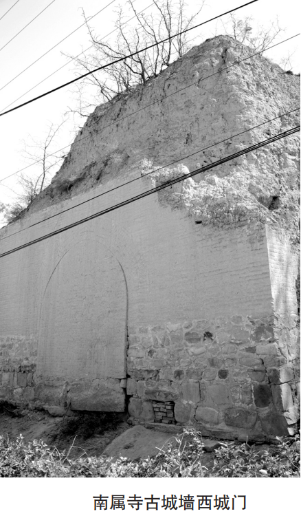 過(guò)去,南屬寺村有三座牌坊。其中一座石牌坊,建于西南城門東50米處的西大街上,為張家貞節(jié)牌坊。兩座木牌坊,一座建于大街東段50米處,為王家節(jié)孝牌坊,是4柱兩層重檐仿亭式建筑;另一座建于村西北方,大廟東側(cè)南北大街丁字街口,為張家忠孝牌坊。這座牌坊,坐北向南,也是重檐仿亭式建筑,高約兩丈余,東西長(zhǎng)約一丈八尺,南北寬約一丈,下立4柱,柱頂有托梁畫棟,中鑲一匾,上書“敕建忠義坊”五個(gè)大字,坊頂為重檐歇山,上履青灰色筒瓦,龍脊凌空。