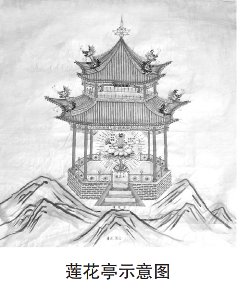 東閆村南半里處有一座最高的山峰,當(dāng)?shù)厝私兴徎ㄉ剑巾斀ㄒ环酵?,人稱蓮花亭。這是一座渾圓的土山,并沒有蓮花的形狀,叫做蓮花山,是因為老輩人相傳山上有一寶物“金蓮花”。“金蓮花”就在山頂中心的眼深井中,每當(dāng)夜深人靜時,“金蓮花”就會從井口冉冉升起,升到一人高時,花瓣張開,里邊蹲著一只金蛤蟆,此時,整個山頭金光閃閃,燦爛奪目。因為有了這樣的寶貝,人們便在山頂井口上建起一座方亭,命名為“蓮花亭”。