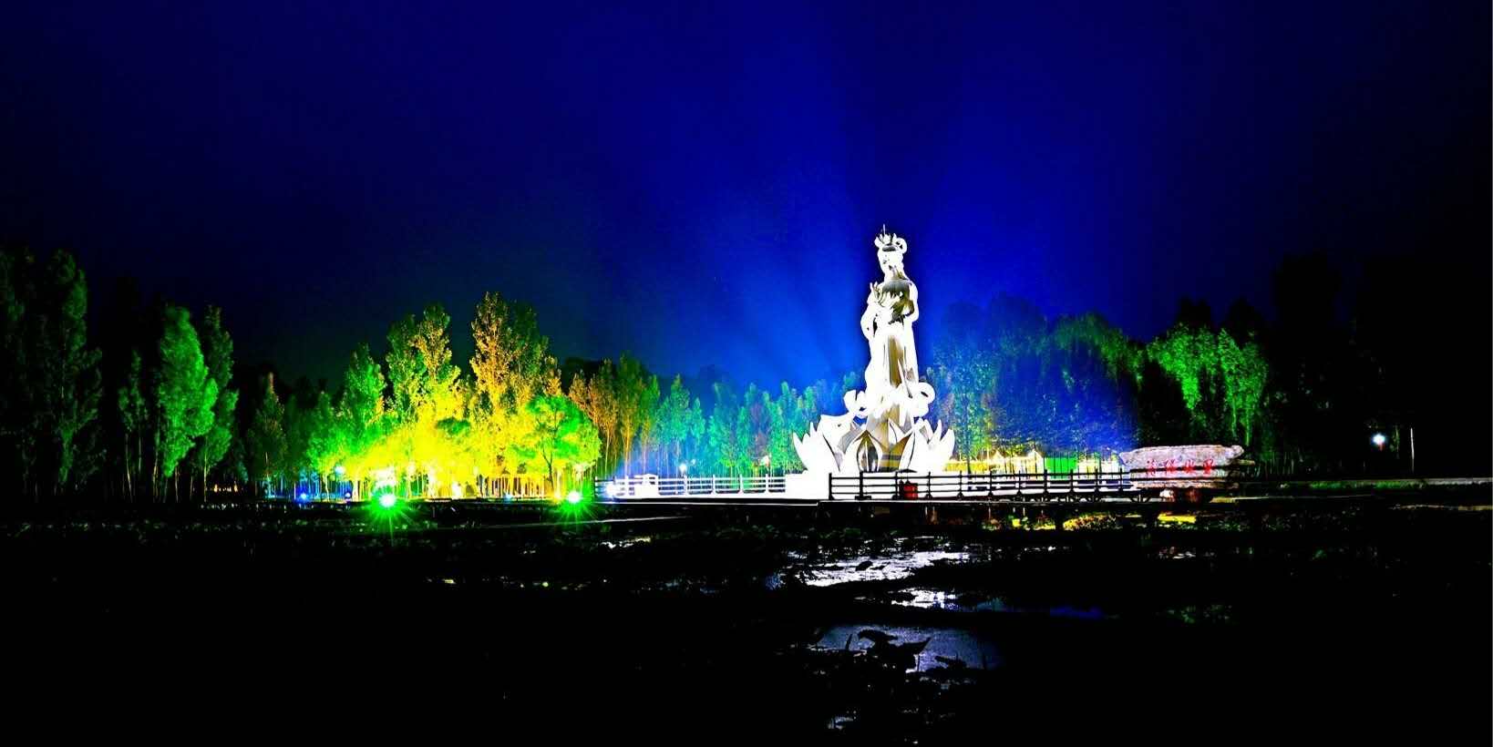 景明詩經(jīng)山水旅游區(qū),位于縣城東南10公里的景明村、南林交村一帶,地處曲沃、聞喜、絳縣三縣交匯的紫金山麓。沃泉水經(jīng)青玉峽谷至白石山崖,急流直下,出景明山而成瀑布,常年不斷,清澈可飲。《水經(jīng)注》描寫它“青巖若點黛,素湍如委練”。沃泉水系在峽谷中攔水成壩,高峽出平湖,環(huán)湖青山環(huán)抱、翠竹成林,在古代即為曲沃十景之一。主要景點有龍巖園、牡丹園、水上樂園、詩經(jīng)故里、千年銀杏樹、南林交龍泉寺等。