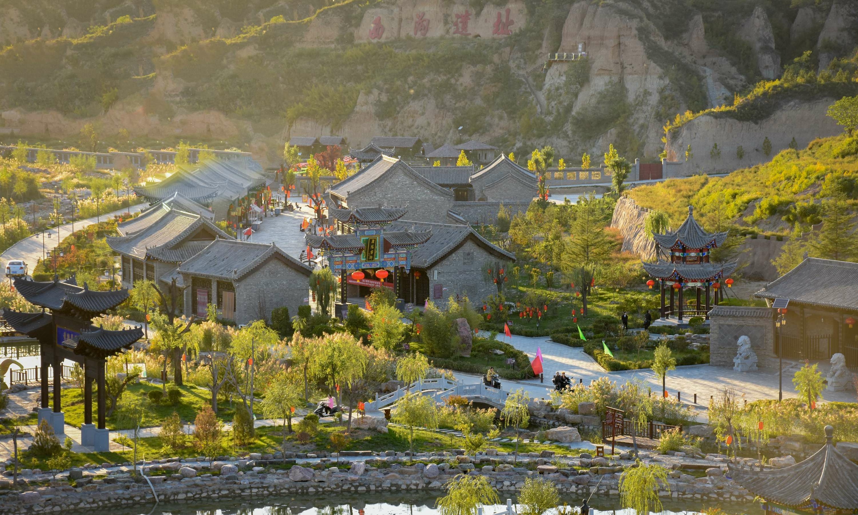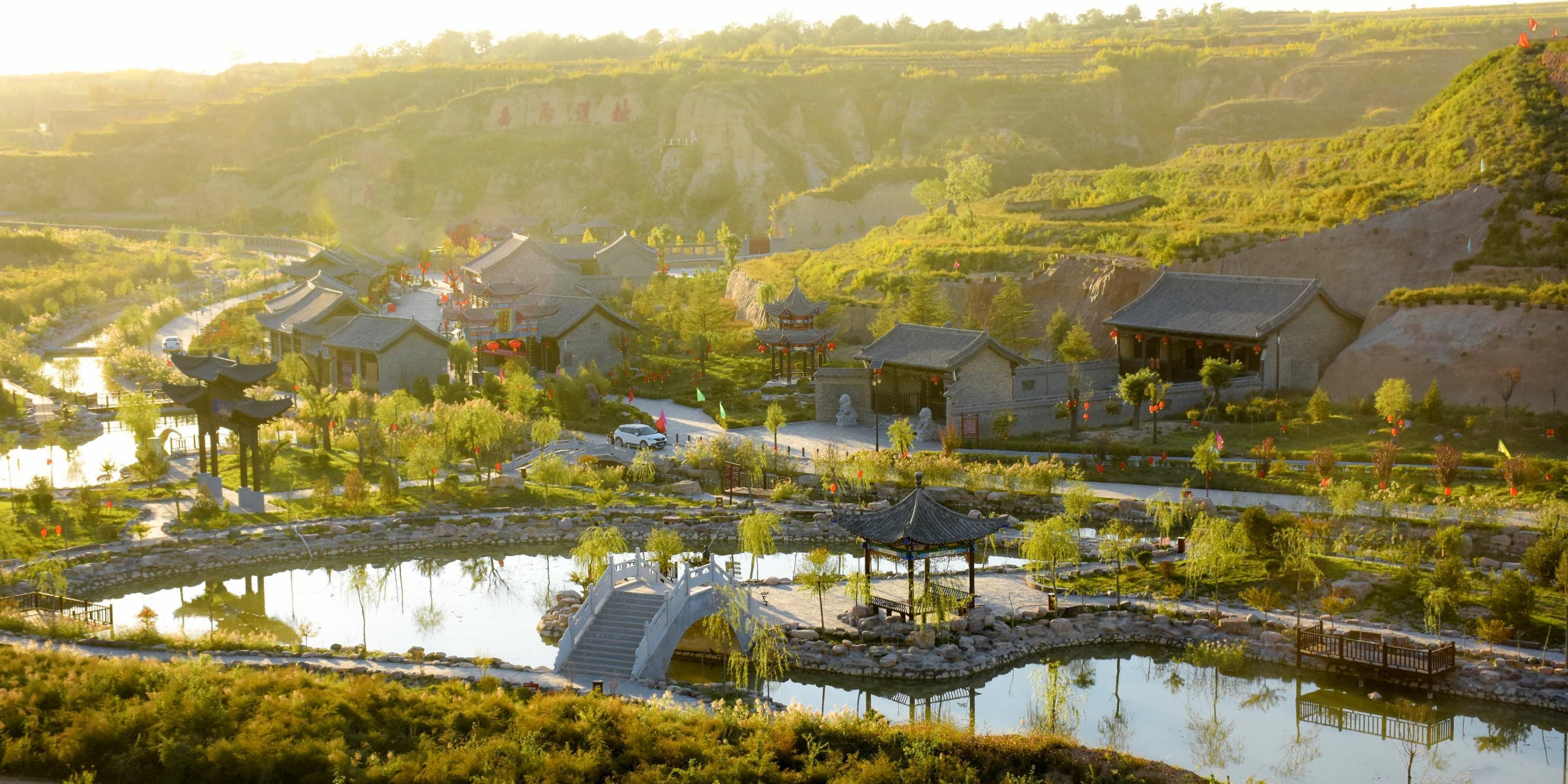 朝陽(yáng)溝位于曲沃縣里村鎮(zhèn)朝陽(yáng)村南滏河河道,總占地2000余畝,總投資6000余萬(wàn)元,景區(qū)內(nèi)地勢(shì)蜿蜒,土地肥沃,水資源豐富,區(qū)域內(nèi)有省重點(diǎn)保護(hù)的“里村西溝遺址”“晉源寺遺址”“龍王廟遺址”“百年松柏”“恐龍化石”“猛犸象化石”以及抗戰(zhàn)時(shí)期的備戰(zhàn)窯洞、地道等歷史珍貴遺產(chǎn)。目前已完成了路基拓寬、道路硬化、山體綠化、渠道整修、開(kāi)挖餐飲窯洞和蓮魚(yú)共養(yǎng)池、修建休閑觀光亭和停車場(chǎng)等基礎(chǔ)設(shè)施建設(shè)。同時(shí),以歷史時(shí)間為軸形成了“四區(qū)”“十景”的景區(qū)格局。四區(qū):指遠(yuǎn)古群落區(qū)、農(nóng)耕體驗(yàn)區(qū)、明清古建區(qū)、現(xiàn)代休閑區(qū);“十景”:指西溝遺址、農(nóng)耕體驗(yàn)園、古縣衙、古驛站、石牌坊、觀景亭、竹林迷宮、石橋景觀、蓮魚(yú)共養(yǎng)池、休閑垂釣園。在這里可以探尋遠(yuǎn)古人類的神秘蹤跡,又能體驗(yàn)歸園田居的農(nóng)耕生活,還能品嘗到最地道的農(nóng)家風(fēng)味小吃。