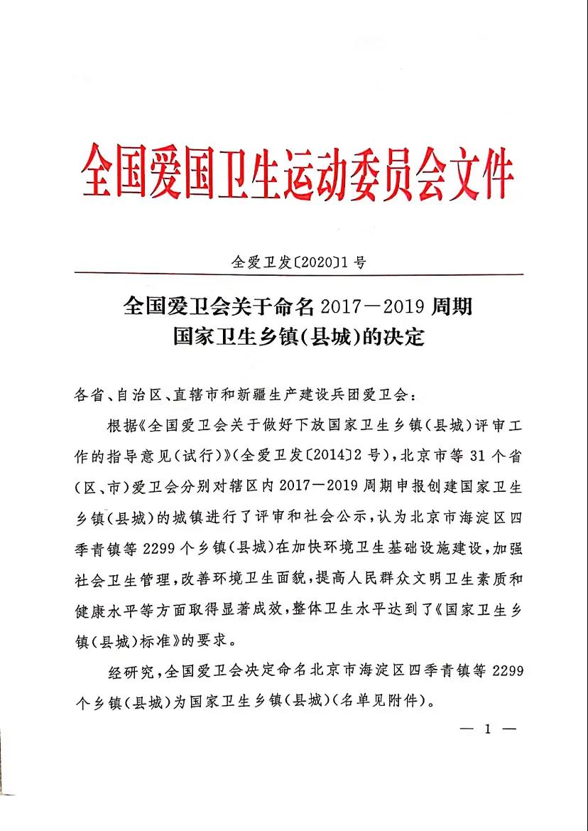 2017-2019 周期國家衛(wèi)生鄉(xiāng)鎮(zhèn)(縣城)