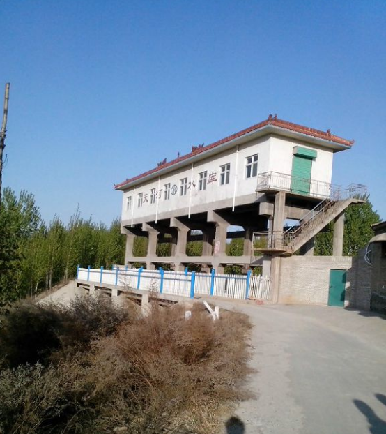 天河水庫,位于縣城東南8公里,營(yíng)里村東,東明德村西。地理坐標(biāo)為北緯35 º35´,東經(jīng)111º31´。因攔蓄天河水得名。天河發(fā)源于絳縣境內(nèi),為汾河三級(jí)支流,屬黃河流域汾河水系。天河水庫位于天河匯入黑河口上游500米處,隸屬曲沃縣水利局天河水庫管理站管轄。該水庫為?。ㄒ唬┬退畮臁?br /> 天河水庫興建于1975年。1976年受益。水庫樞紐工程由大壩、灌溉涵洞及溢洪道三項(xiàng)組成。大壩呈南北方向,為均質(zhì)碾壓土壩,大壩迎水坡為干砌石護(hù)坡,高程463.5米以上。坡度1∶2.5,背水坡坡度自下而上為1∶2.5、1∶2.0兩級(jí)。壩頂寬4米,壩高16.5米,防浪墻高1.2米,壩頂長(zhǎng)232米。溢洪道利用天然地形布置于大壩右側(cè)庫岸,泄水入黑河,輸水涵洞位于大機(jī)房左岸樁號(hào)0+050米處,與壩軸線垂直相交,選用Φ580鋼筋混凝土管兩道,全長(zhǎng)56米,縱坡1/100,出口設(shè)ф600閘閥門兩個(gè),下游與輸水渠相接,設(shè)計(jì)灌溉面積1萬畝。